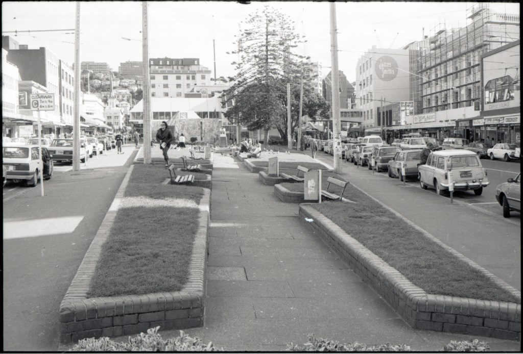 Unfortunately, the remaining Norfolk Island Pine was also removed shortly after. In 1988 the Wellington City Council began a ‘Pigeon Park’ re-development project. There is probably a record somewhere of the decision to remove one or both of the pines, however, given the time and effort needed to find this it is beyond my resources for this current blog-post.