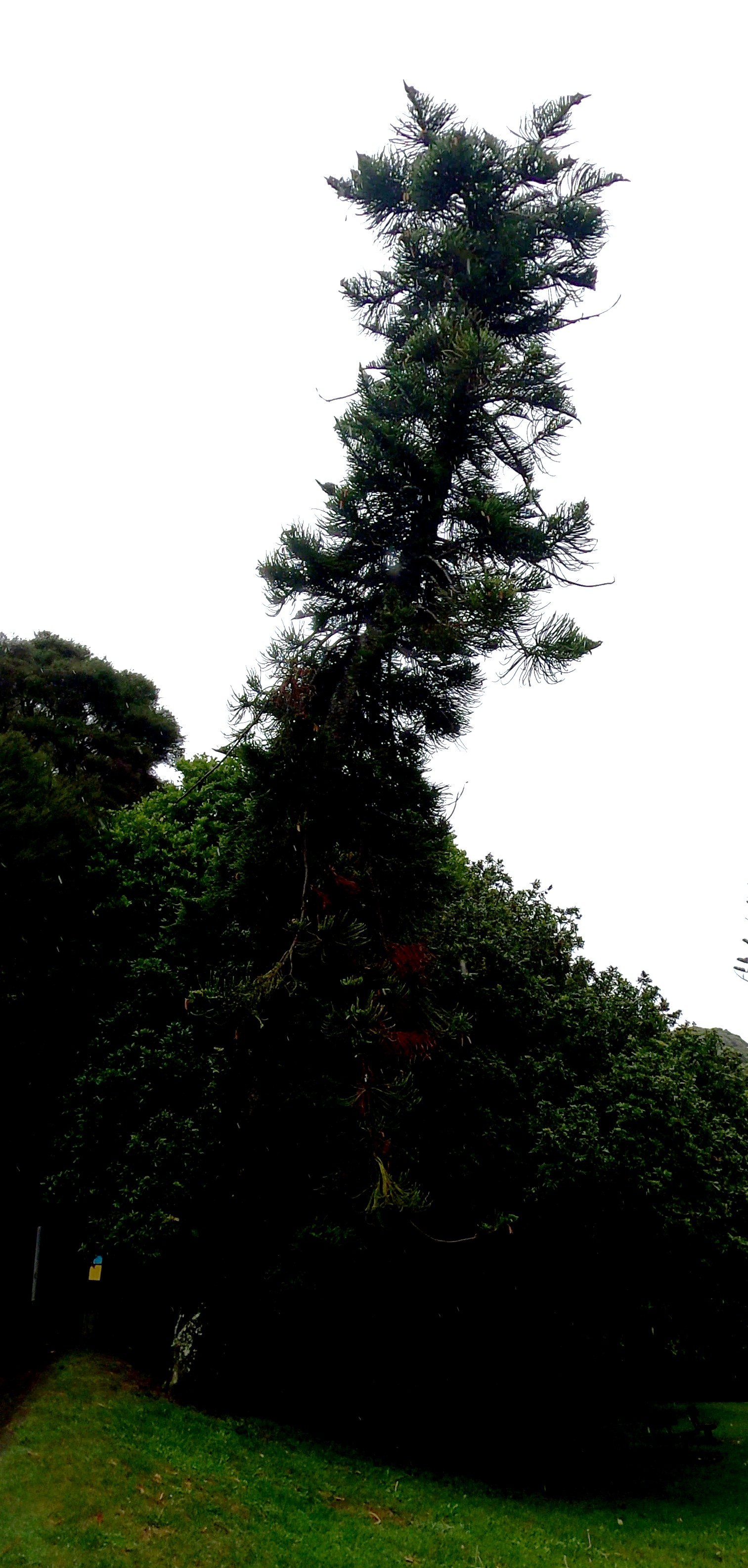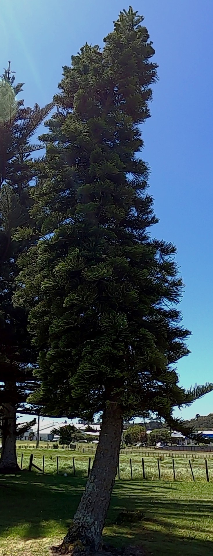 When grown outside of its native range, this species has a pronounced lean so ubiquitous that it is often used as the identifying characteristic for the species. J. Johns et al. (2017) ‘Worldwide hemisphere-dependent lean in Cook pines’, Ecology 98(9): 2482-2484.