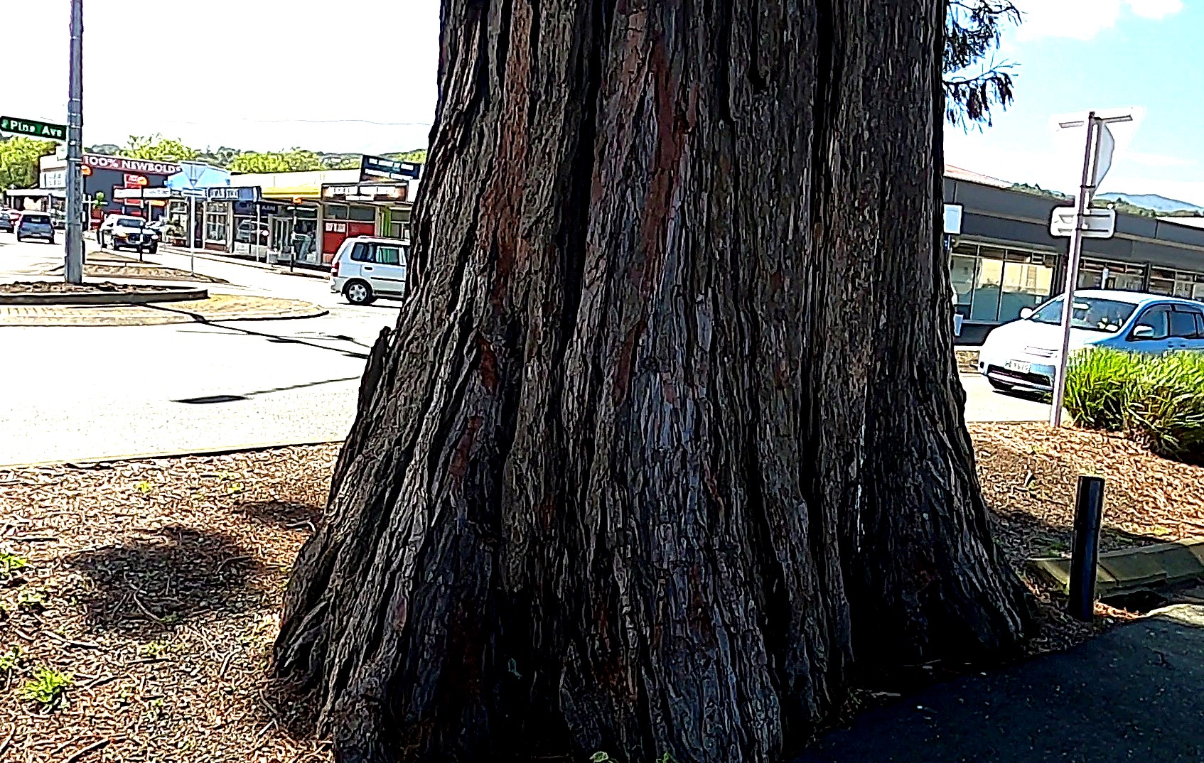 Today, the driver who diverts from the main highway and calls in to visit Upper Hutt can hardly escape seeing the giant redwood on the skyline. Clearly, though they should be interested to know about the battles that were fought over which trees survived and which were removed in the leafy precincts of Upper Hutt in the 1950s. It has to be said that at 148 years old the sole remaining redwood has remarkably good form and health, as the final photos show: