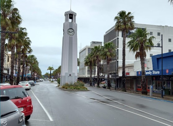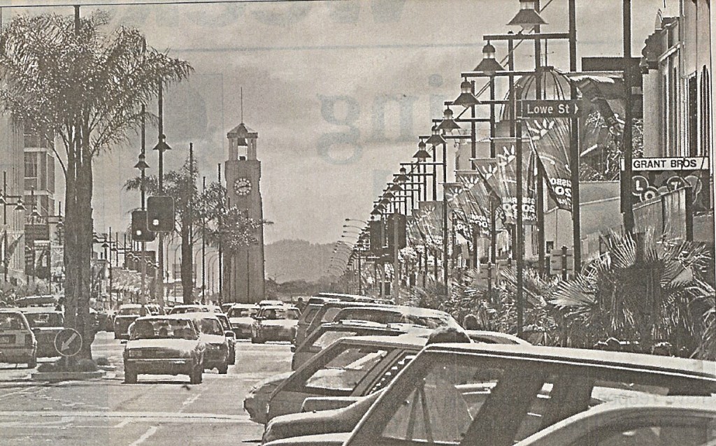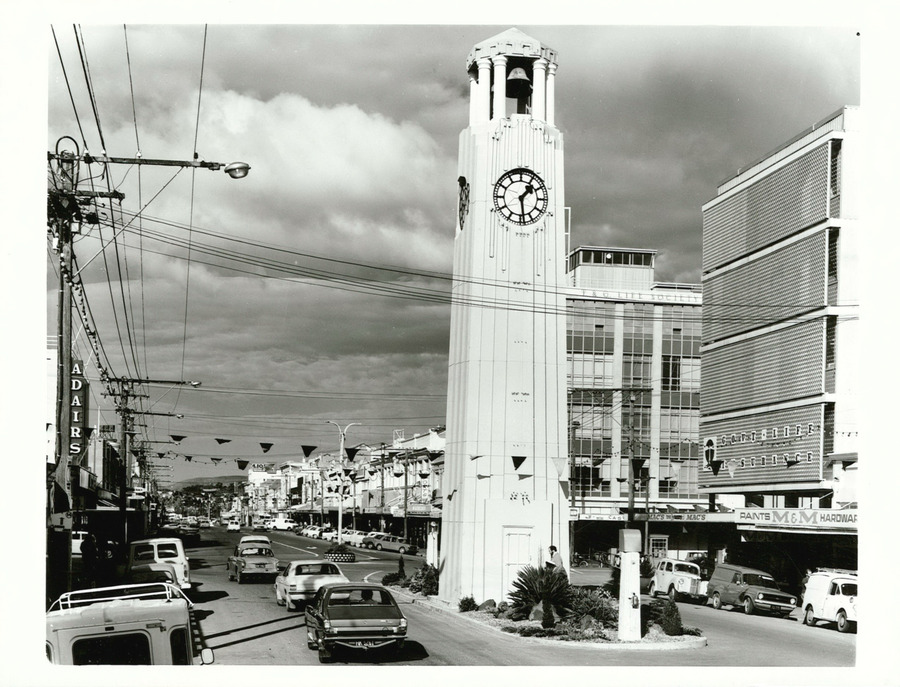 Source: Gladstone Road with the Memorial Clock Tower in the foreground, R. Coad, 1977, Archives New Zealand