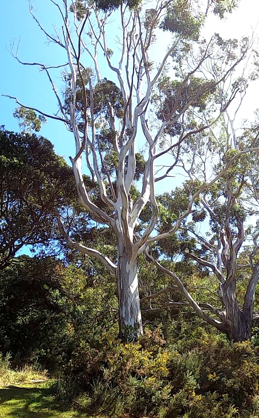 This tree looks to be at least 20 metres tall, so quite old, but if we look closely at the trunk, the same features of whiteness and crookedness predominate: