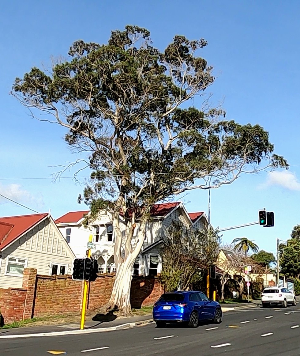 M. Wilcox of the Forestry Research Institute notes that E. pulchella was widely planted in New Zealand’s North Island, however it was ‘virtually worthless’ as a forest tree owing to its crooked stem and relatively slow growth rate.1 From a forester’s point of view the tree’s aesthetic features were clearly not of interest, but it seems that the value of the white-limbed trunks and their crookedness did not escape others as the tree was also planted in amenity and garden landscapes. Here are a few in the Wellington region: